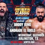 December 13, 2023 | By Administrator | No Comments | Filed in: AEW, Wrestling.AEW Dynamite now includes Brody King vs. Andrade Idolo AEW Dynamite now includes Brody King vs. Andrade Idolo in todays Show_Type news Wednesday, a Blue League Continental Classic game will be played. The Blue League debuts on Dynamite Wednesday. Tony Khan announced on Tuesday night that Brody King would face Andrade El ldolo in a • Read More »